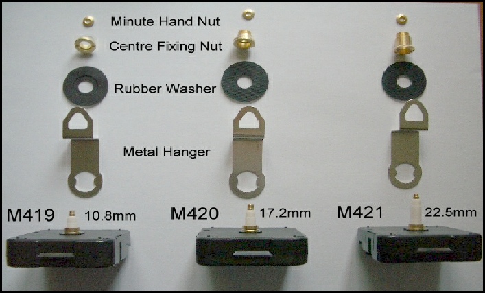 Available in three different spindle lengths and normally supplied with a rubber washer, securing nut and plastic washer, strong metal hanging bracket and a minute hand securing nut. However we at Timetips are now offering our customers even more choice by allowing you to choose from additional options.