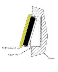 Quartz Movement, 35mm diameter brass gold plated bezel, white dial with black Roman numerals and centre seconds. Fixing is by metal capsule requiring a hole of 31mm diameter and a depth of 8mm