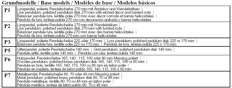 Pendellängen und Pendelaufhängungen sind speziell für die Verwendung mit Kieninger Uhrwerken ausgelegt
